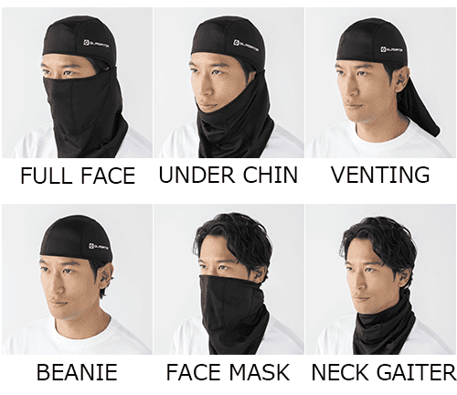 フルフェイスだけでなく、アンダーチン、フェイスマスク、ネックゲーターなど、6WAYで使い分けが可能です。