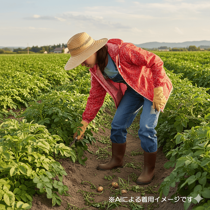 農作業やガーデニング、屋外作業などにぴったり、「とりあえず一枚あると安心」な万能ヤッケです。