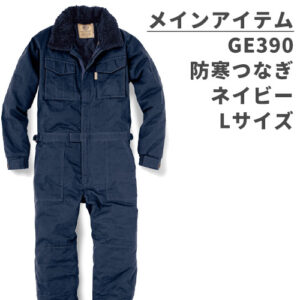 メイン商品は、防寒性と着心地を兼ね備えた GE390 防寒つなぎ服