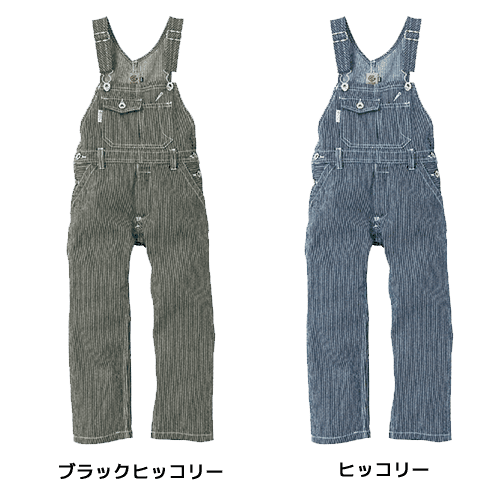 お手伝いする子供たちにも本格的でおしゃれなオーバーオールでキメてみませんか?!人気のヒッコリー生地はワンウォッシュ加工し、ユーズド感のある着心地。デザインにもこだわったカジュアルサロペットです。キッズサイズは100〜150までそろえております。