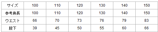 | サイズ | 100~150 ※サイズ表をご覧ください |