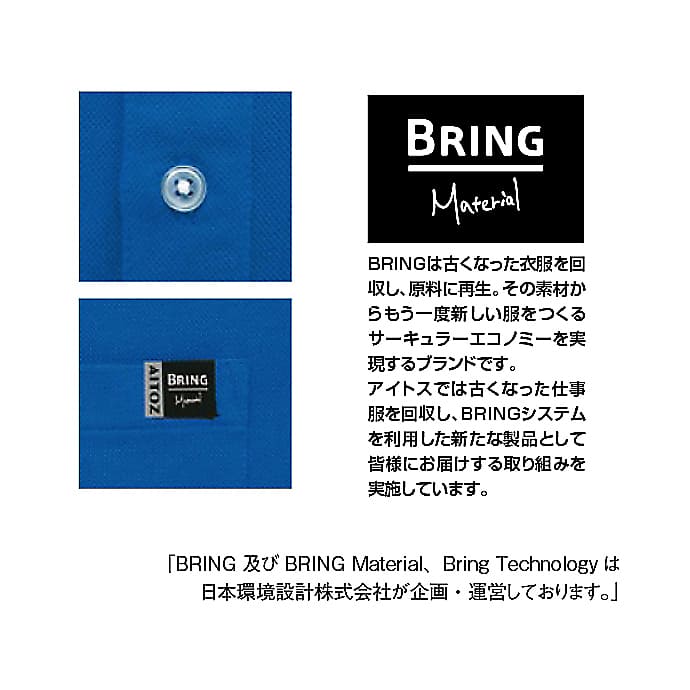 古くなった仕事服を回収し、BRINGシステムを利用し再生した原料を利用したECO素材です。