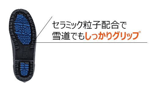 ソールにセラミック粒子を配合することで雪道や氷上でしっかりグリップを発揮します。